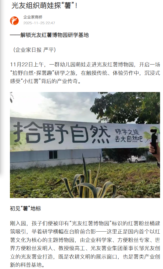 轉載搜狐網(wǎng)-光友組織萌娃探“薯”!