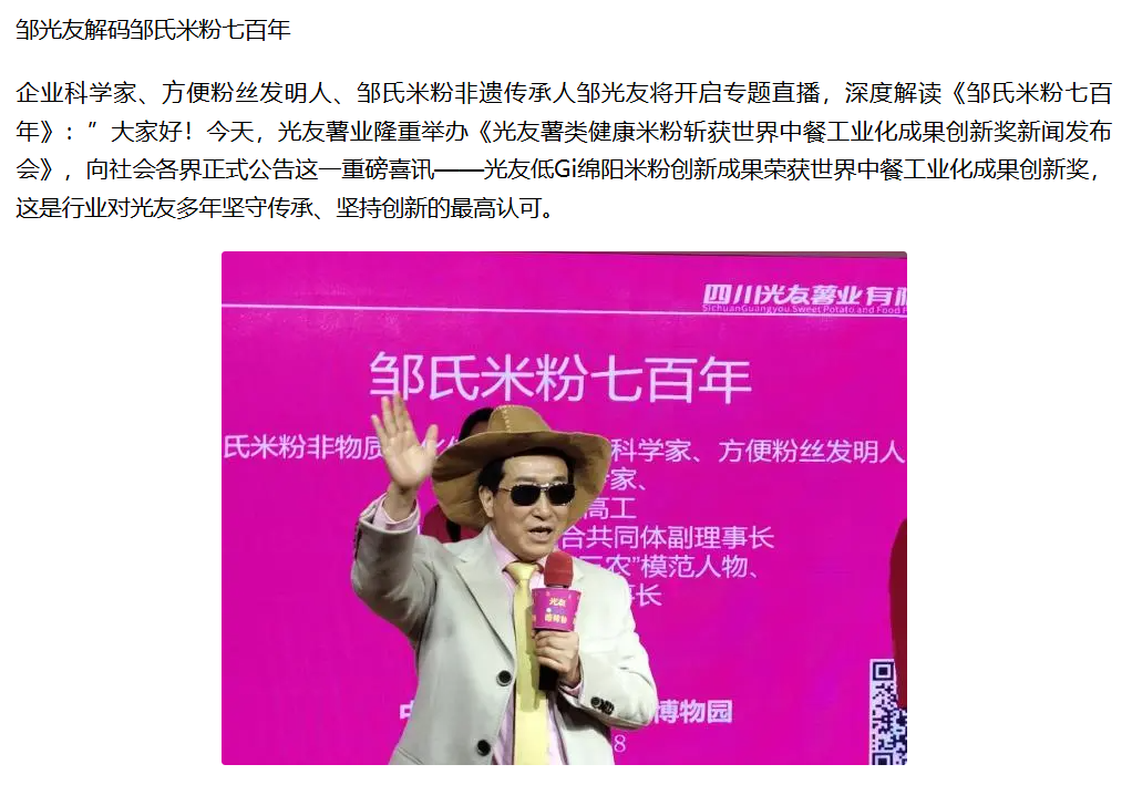 轉(zhuǎn)載鳳凰網(wǎng):光友低Gi健康米粉獲世界中餐工業(yè)化創(chuàng)新成果獎(jiǎng)新聞發(fā)布會(huì)圓滿召開